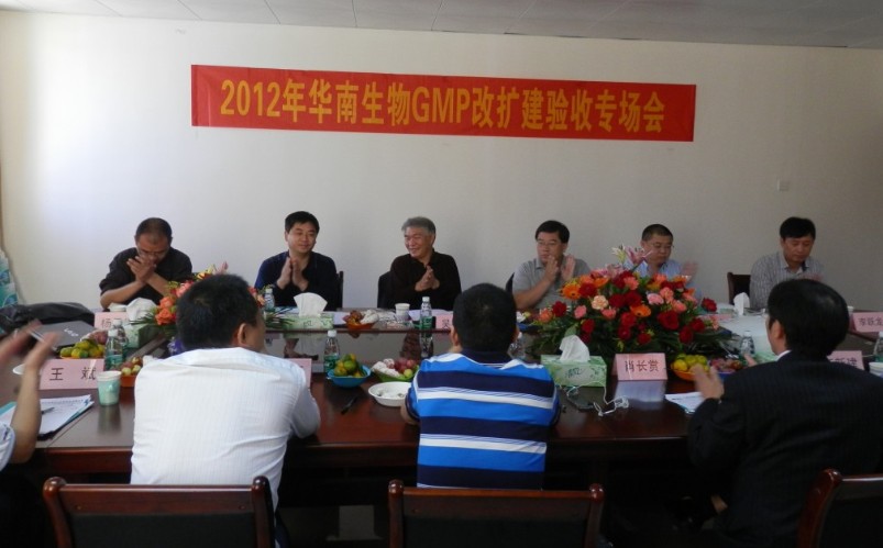 根據《獸藥生產質量管理規范》的規定,依照《獸藥生產質量管理規范檢查驗收辦法》,農業部獸藥GMP工作委員會辦公室指派吳福林、張廣川、魏財文、楊承槐4名檢查員擔任我司獸藥GMP驗收工作;廣東省畜牧獸醫局選派羅建民、李躍龍兩名同志擔任觀察員,共赴廣州市華南農大生物藥品有限公司,對公司改擴建的胚毒滅活疫苗生產線、細胞毒滅活疫苗生產線進行為期2天的獸藥GMP現場檢查驗收。