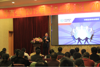 華南生物總經理梁昭平作《2015年度工作總結及2016年度公司戰略規劃》報告