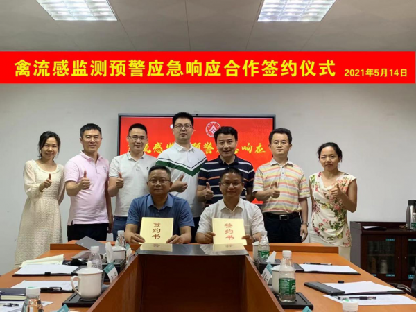 2021年5月14日上午,廣州市華南農(nóng)大生物藥品有限公司與華南農(nóng)大獸醫(yī)學(xué)院在華南生物行政樓會議室舉行了禽流感監(jiān)測預(yù)警應(yīng)急響應(yīng)合作簽約儀式。廣東省農(nóng)業(yè)科學(xué)院副院長廖明教授、華南農(nóng)業(yè)大學(xué)獸醫(yī)學(xué)院副院長亓文寶教授、賈偉新副教授、瞿孝云老師,廣州市華南農(nóng)大生物藥品有限公司總經(jīng)理梁昭平、營銷副總監(jiān)姜世友、研究院副院長葉賀佳、研究院主任仇微紅、產(chǎn)品技術(shù)部經(jīng)理孫浩等產(chǎn)品線成員出席了本次簽約儀式。